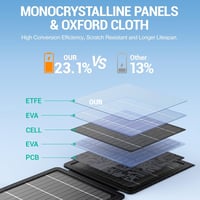 23.1% high conversion efficiency: 10W solar panels are made with premium mono-crystalline solar cells, generate energy from the sunlight, and perform better with 23.1% higher conversion efficiency, providing unlimited green power for your device under the sun.