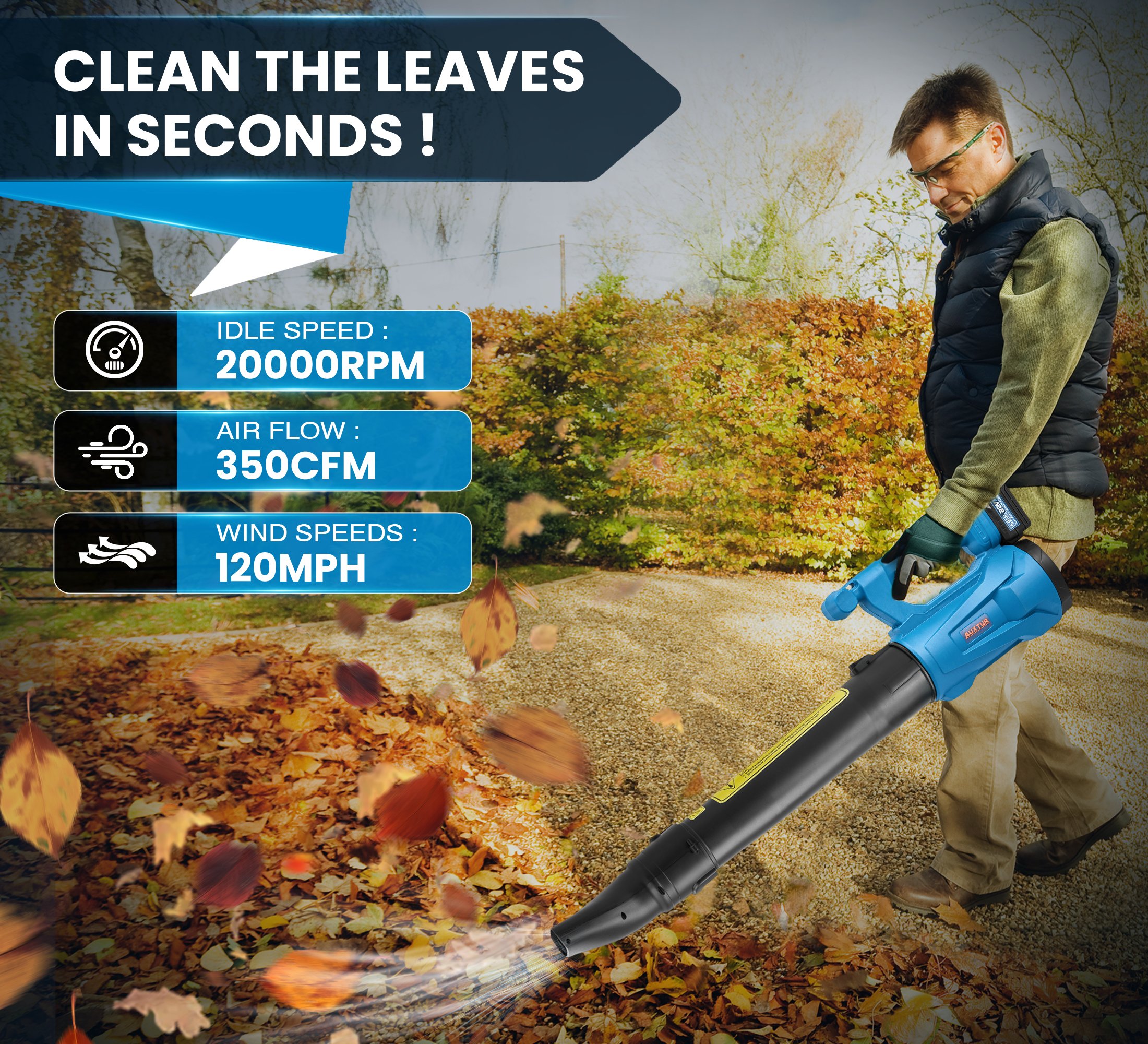 VERSATILE and EFFICIENT: Whether you're clearing your lawn, driveway, or patio, this cordless leaf blower is designed to tackle any task with ease. It ensures efficient leaf removal every time.