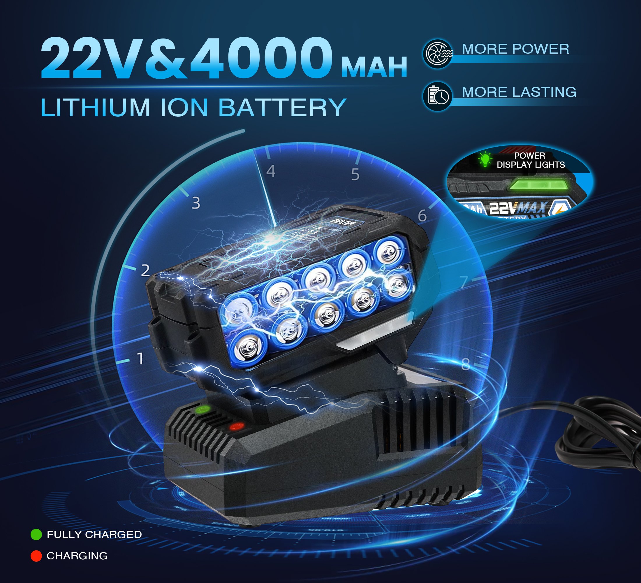 Cordless Leaf Electric Blower, Batteries, US Charger