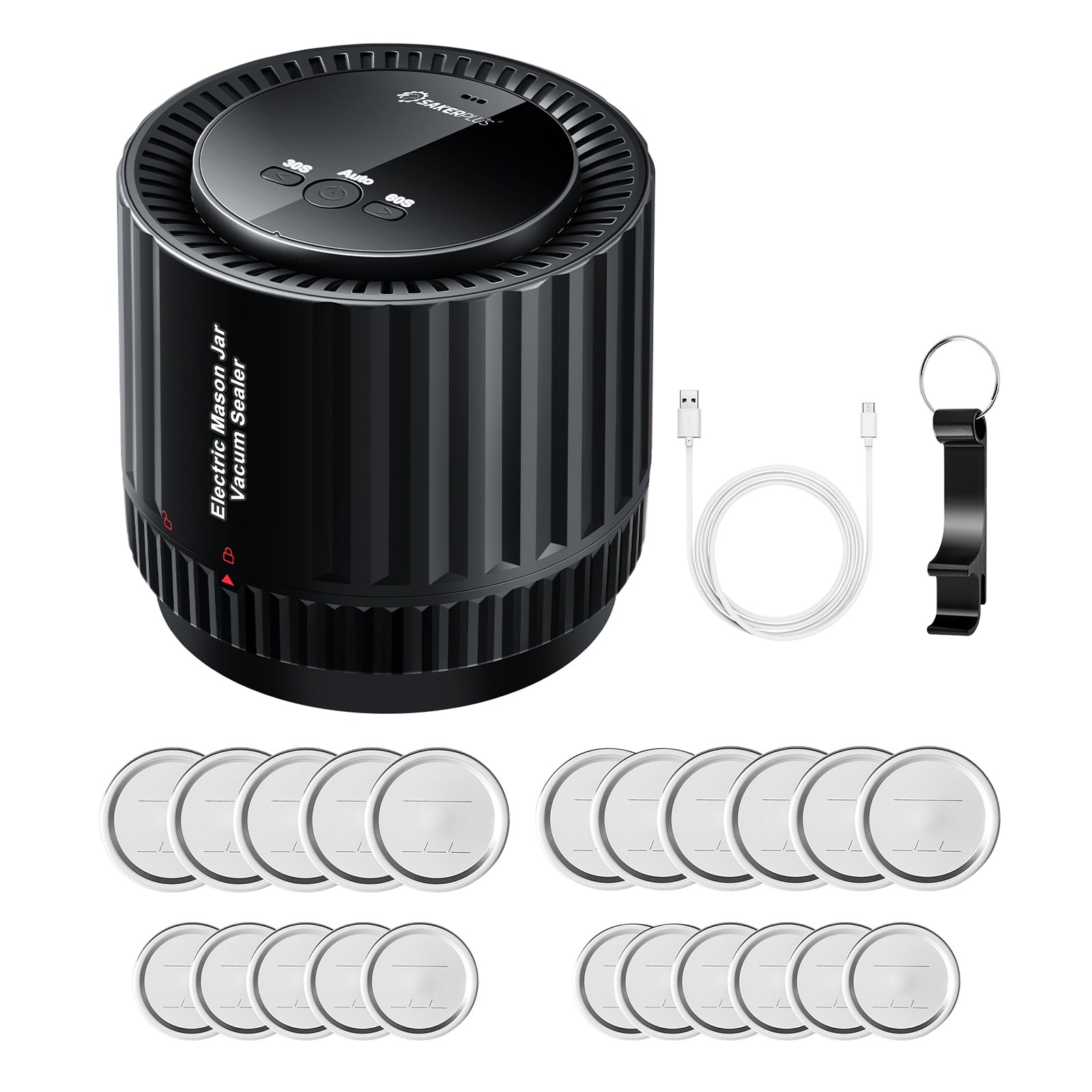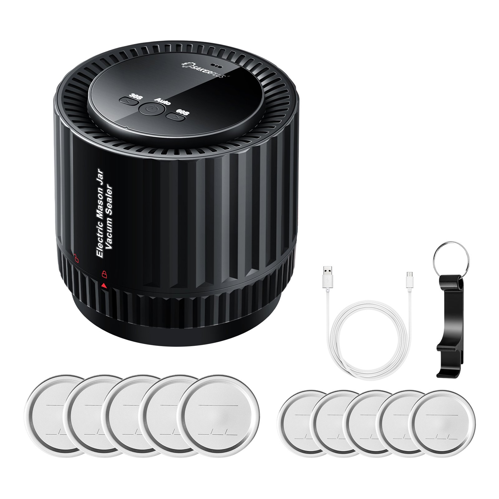 Mason Jar Sealer Vacuum Kit: The SakerPlus comprehensive kit includes everything you need to get started – electric vacuum sealer,5* wide mouth mason jar lids,5* regular mouth mason jar lids, and instructions. Experience the convenience of SakerPlus electric vacuum sealer specifically designed for mason jars.