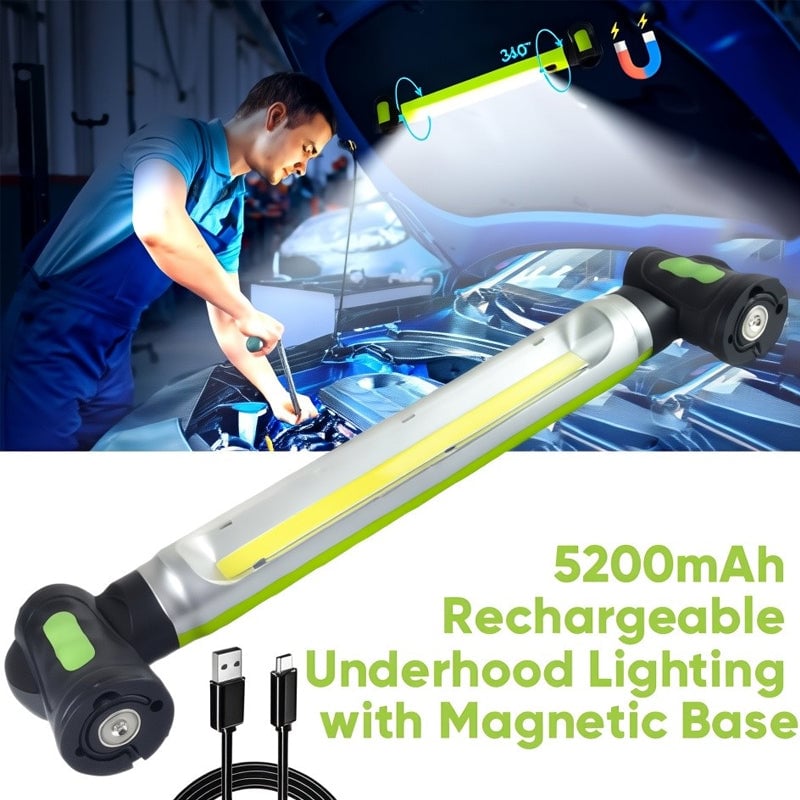 5200mAh rechargeable: This cordless under hood work light built-in 5200mAh capacity battery, rechargeable by Type-C port, saving the cost of extra battery/replace. 3.5-4Hrs full charging time, lasts for 2.5Hrs continuous lighting in high brightness and 5.5Hrs in low brightness. The 4-level power indicator allows you to check remaining battery and ensure charging the rechargeable work light in time to avoid work interruptions