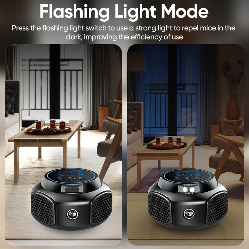 Four Adjustable Modes: Features ultrasonic, pressure, and electronic waves, plus a flashing light mode—customize to match your indoor pest control needs.