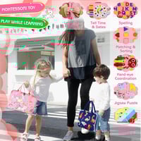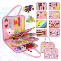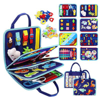 - 8 pages, endless fun: Our innovated busy board for toddlers has 8 pages to play, featuring multiple varieties of toddler activities, can keep your little one busy for hours. This toddler busy board is designed in varying difficulty levels to be challenging but not too much to keep your toddlers interested. Including zipper, shoelace, belt, button, clock, calendar, shapes matching, threading numbers, hook&loop letter, jigsaw animal puzzle and etc.
