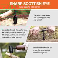 - Peg Maker - Another part of this survival multitool is the peg tool. The scotch eyed auger is has a cutting point for a peg wrench. Hammer into a branch for a peg the same size as the wood auger bit.