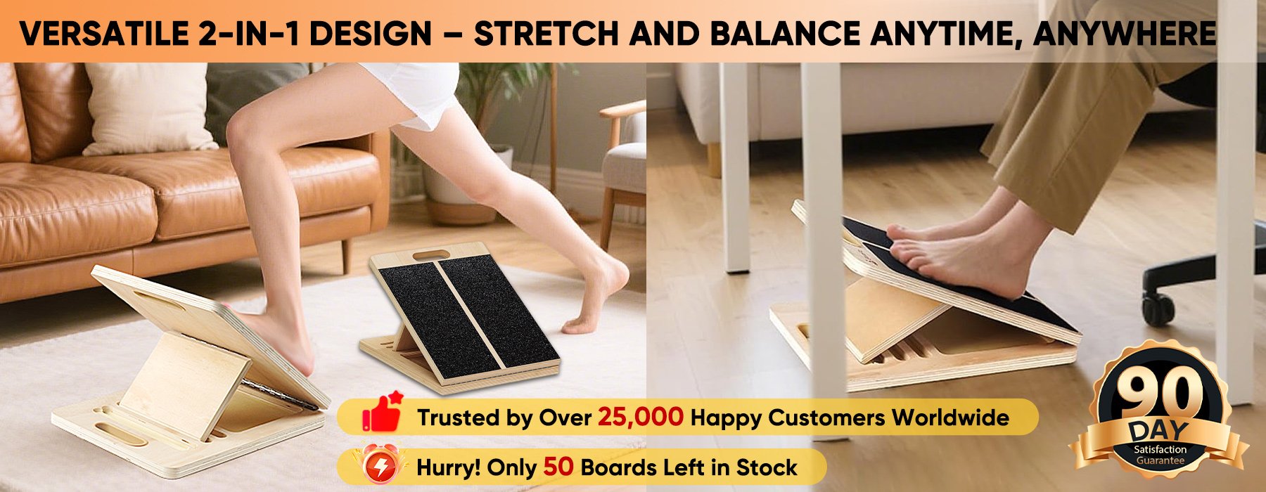 I was skeptical at first, but this board exceeded expectations. Solid pine, great grip, and no sliding—even on my concrete floor. I use it for calf stretches and flip it over for balance drills. It’s sturdy, versatile, and feels premium.