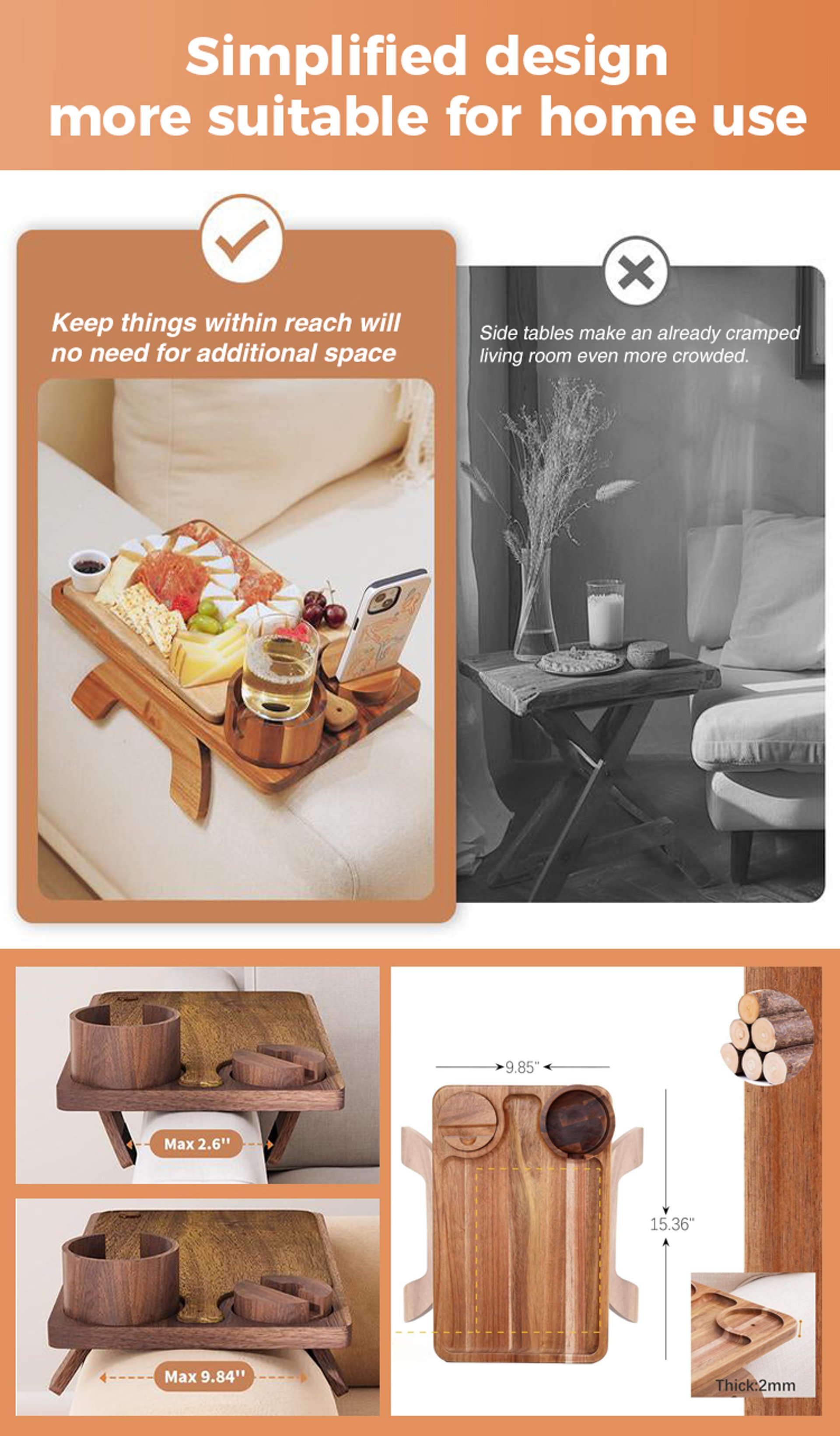 Easily adapts to various sofa sizes and armrest shapes. Whether your sofa is large or small, this tray will fit perfectly and stay securely in place.