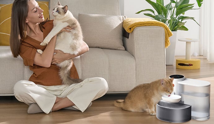 Touch Screen: Adjust the volume and time intervals based on your pet’s drinking habits.