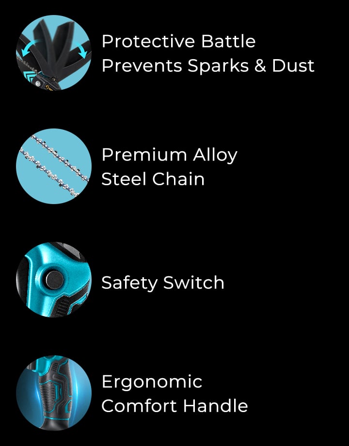 The Saker Mini Chainsaw is superior to both manual and gasoline-powered saws in comfort, cutting efficiency, safety, and speed! An investment that promises long-term savings!