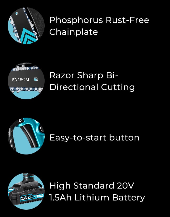 The Saker Mini Chainsaw is the most versatile and user-friendly powerhouse on the go! Whether you're tackling large logs, pruning branches, or indulging in garden work, it's your go-to for all landscaping and home woodwork tasks.