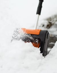Fast clears before work, and the chute keeps snow from falling back on the path. Way easier than a shovel.