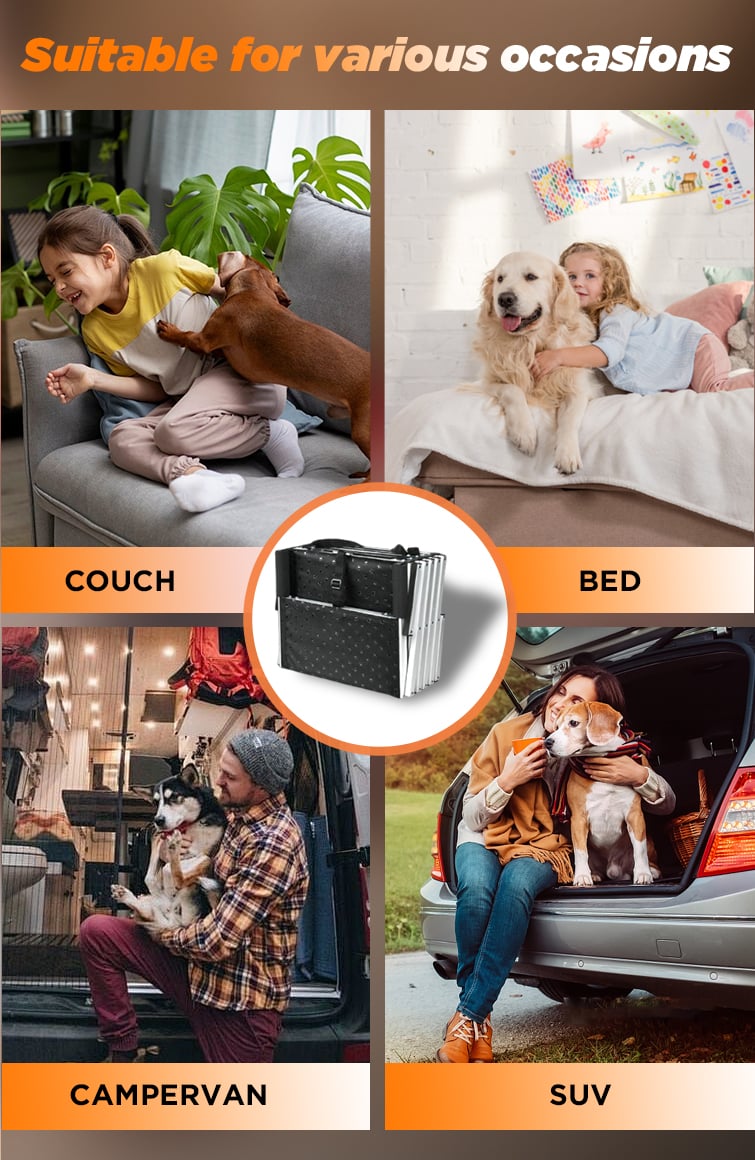 Designed for pets with arthritis, hip issues, and other mobility challenges, this stress-relieving, low-slope design allows for an easy transition without the need for strenuous jumping, helping to protect your pet’s joints and bones.