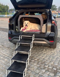 Fits perfectly in my SUV, and the foldable design makes it super convenient for travel. My dog no longer struggles getting into the car, which makes trips less stressful.