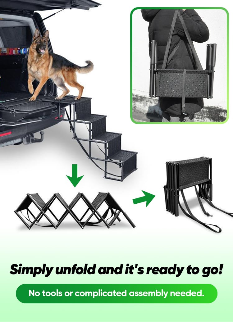 No assembly required! Our dog car ramp is ready to use right out of the box. Simply unfold it and you're good to go.
