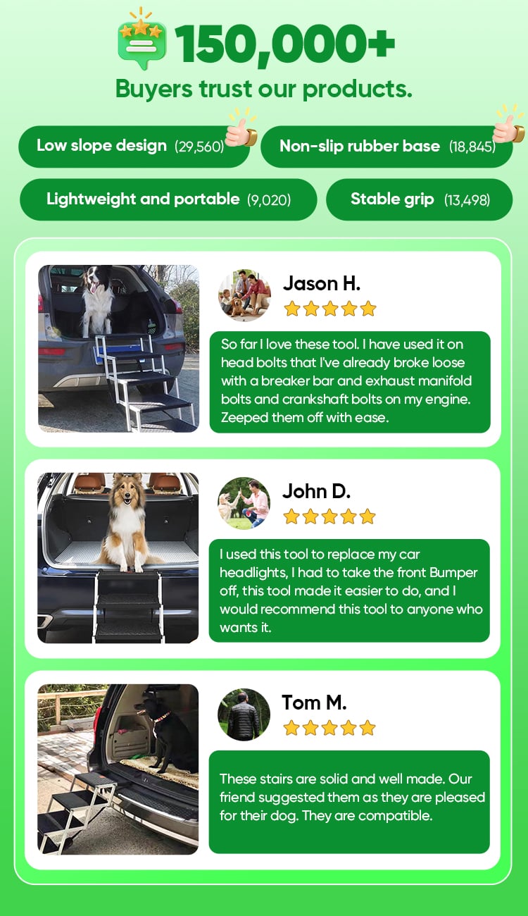 Our dog is getting older and having joint issues, so these steps work perfect to prevent injury or aggravation from him jumping down out of our pickup.