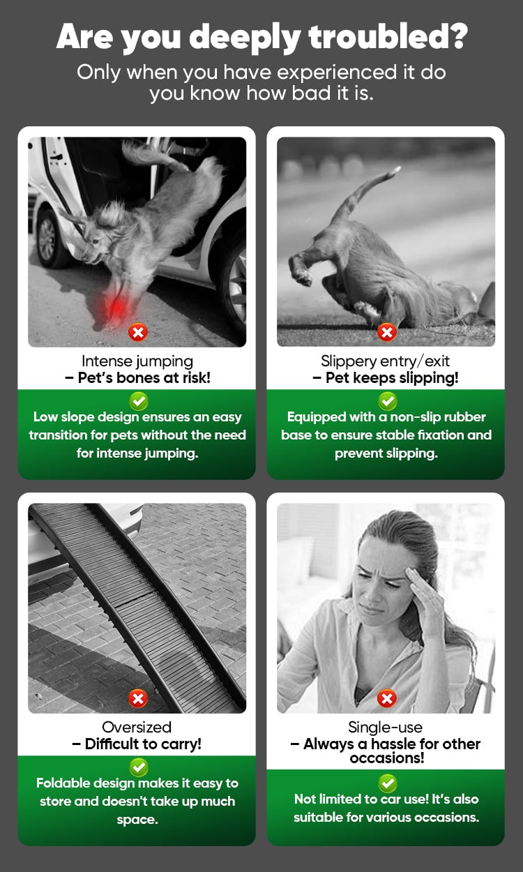 We recommend acclimating your dog to the ramp using positive reinforcement techniques, such as treats and praise. Most dogs adapt quickly with a little encouragement.