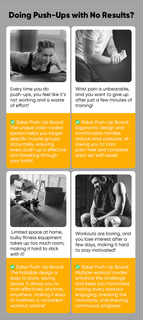I struggled with wrist pain during push-ups before, but after using the Saker Push-Up Board, I can do more reps without discomfort. It's a game-changer!