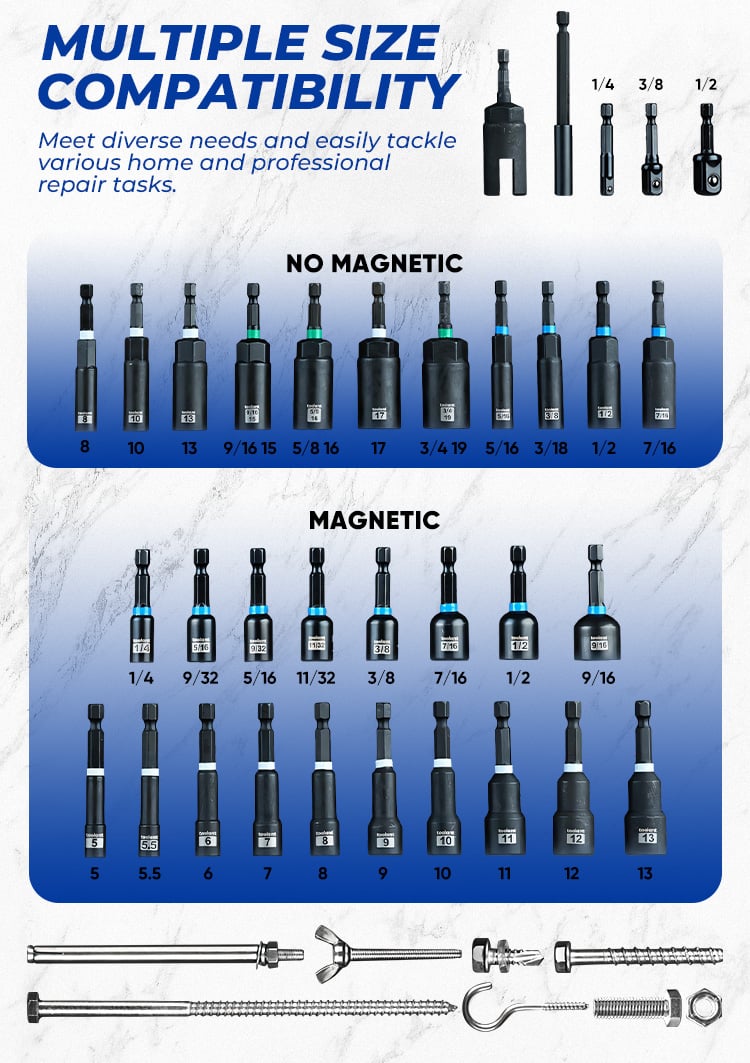 QUESTION: What sizes are included in the Saker Magnetic Impact Nut Driver Set?