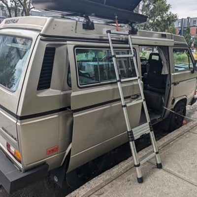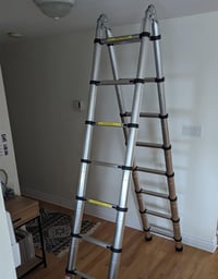 Ladder is easy to use, very sturdy. I purchased to take camping to clean debris off the slide outs, or get easy on the roof if required. Perfect for the job at a very good price.