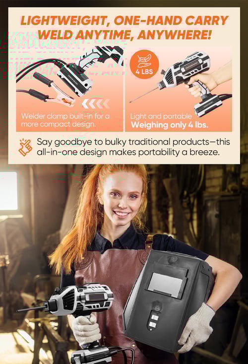 This lightweight, compact welding machine is easy to transport between different workspaces, and its small footprint allows for convenient storage in any tool space, keeping your workshop clutter-free.