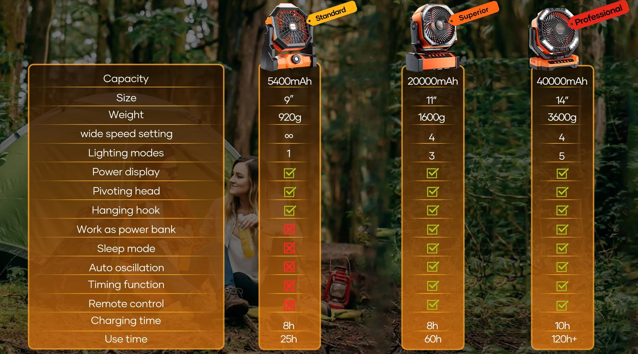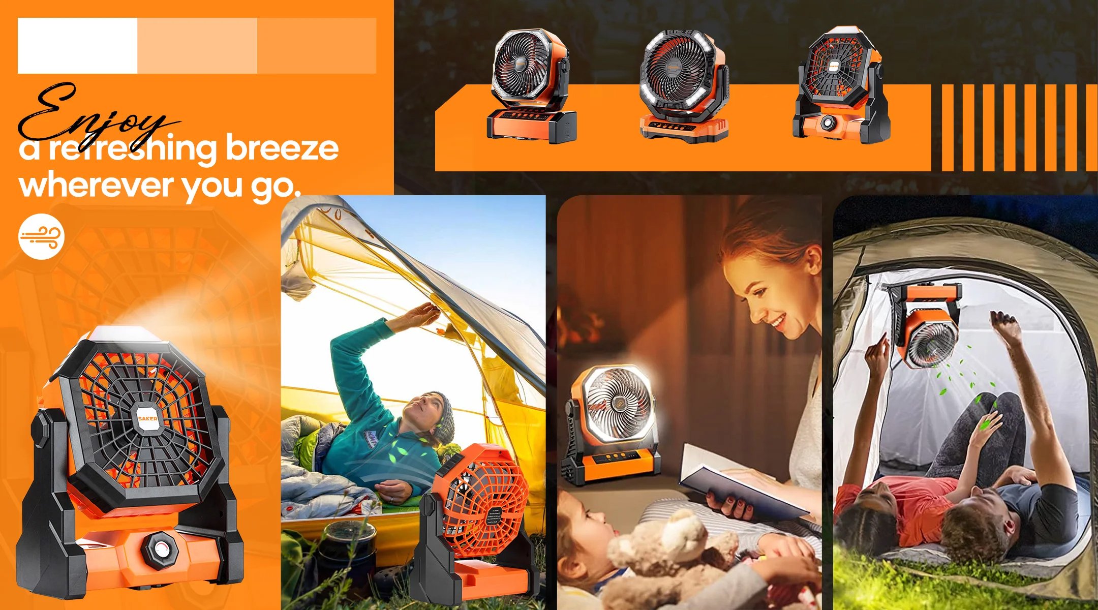 This fan is not limited to camping use; it is also perfect for bedrooms, dormitories, offices, and other indoor spaces. Its portable and rechargeable design allows you to enjoy a cool breeze wherever you go.