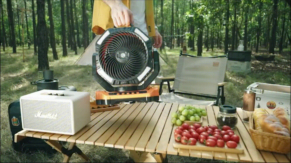 This camping fan features a built-in LED light that serves as a convenient light source during nighttime activities. It illuminates your surroundings and keeps you cool in dark and hot conditions.