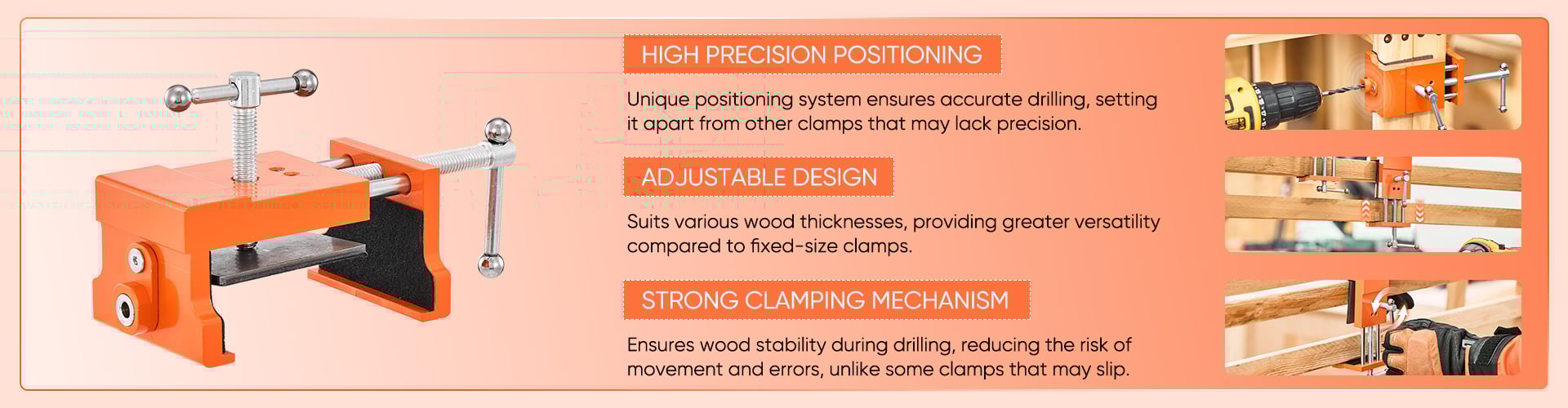 This tool has exceeded my expectations. The Saker Woodworking Drilling Holding Clip is incredibly versatile and easy to use. It has significantly improved my workflow, and the adjustable jaws make it suitable for a wide range of tasks. Five stars for sure!