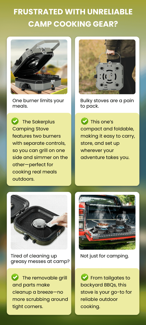 From bacon and pancakes in the morning to burgers, stir-fry, or grilled veggies at dinner—this stove does it all. It’s built to handle everything from simple meals to campsite feasts.