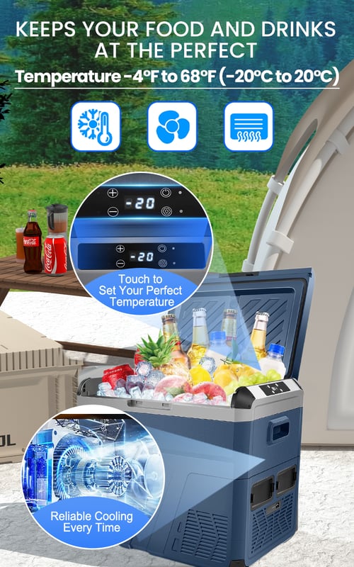This Car Refrigerator can cool from 68°F all the way down to -4°F, keeping your food frozen and your drinks ice-cold even on the hottest days.