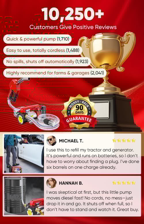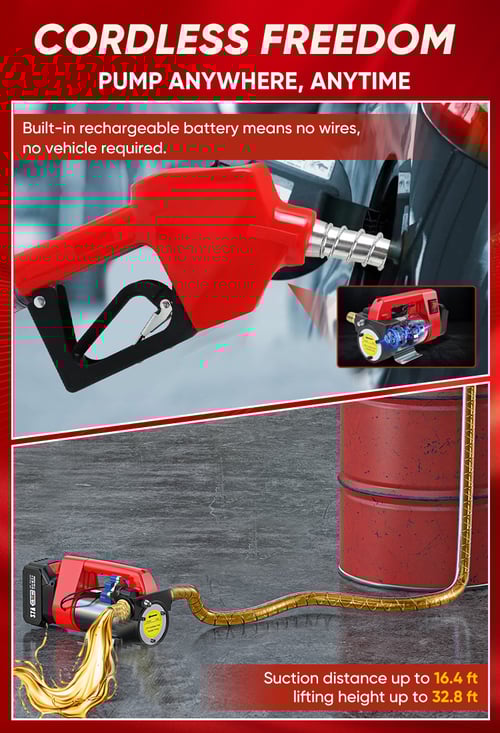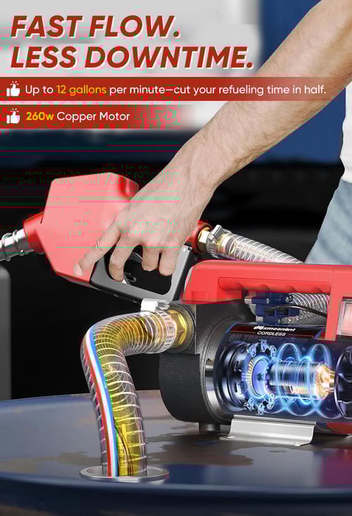 The pump features a 260-watt pure copper motor, delivering fast and efficient fuel transfer—up to 12 gallons per minute.