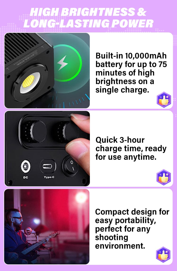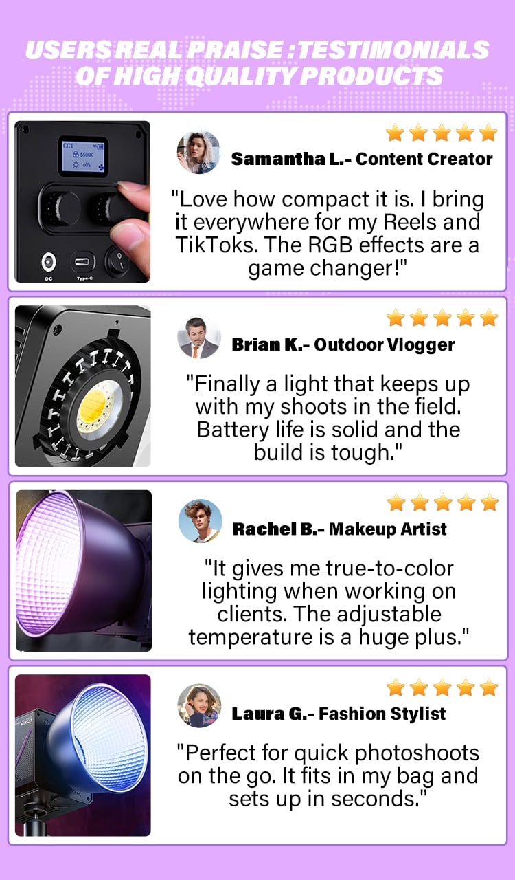 The handheld external light is incredibly lightweight and easy to carry around during outdoor shoots. Its brightness adjustment feature is very user-friendly.