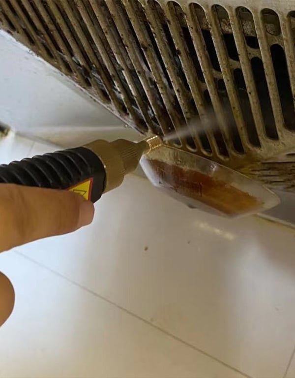 High-pressure steam cuts through grease & grime