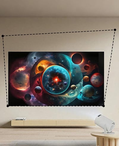 Projects up to 150" in crisp 4K UHD on any wall or ceiling