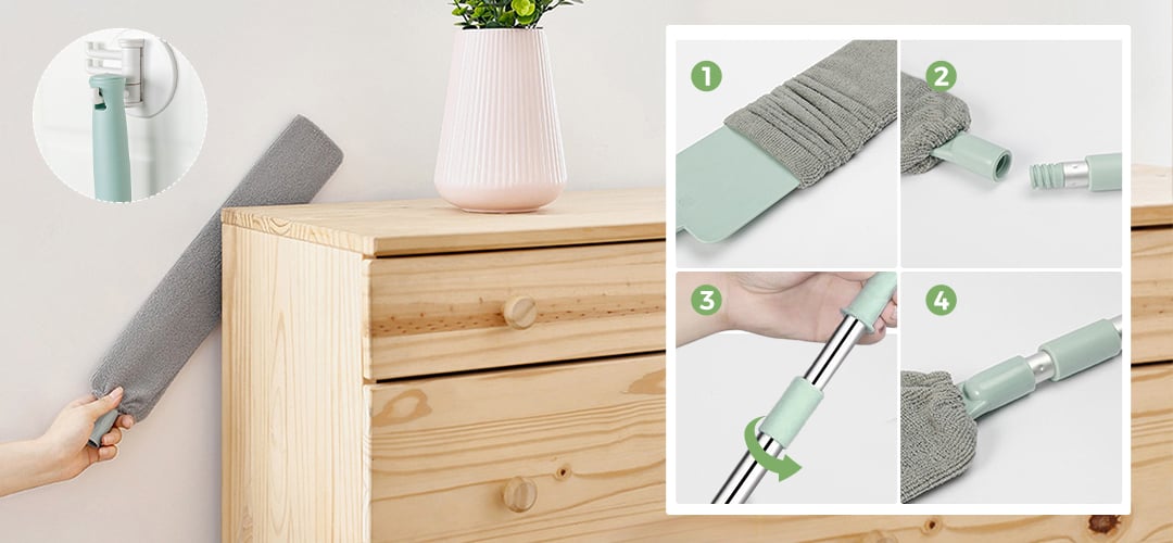 The duster with handle is sturdy, and the microfiber duster is lint-free, allowing you to use it again and again for years.