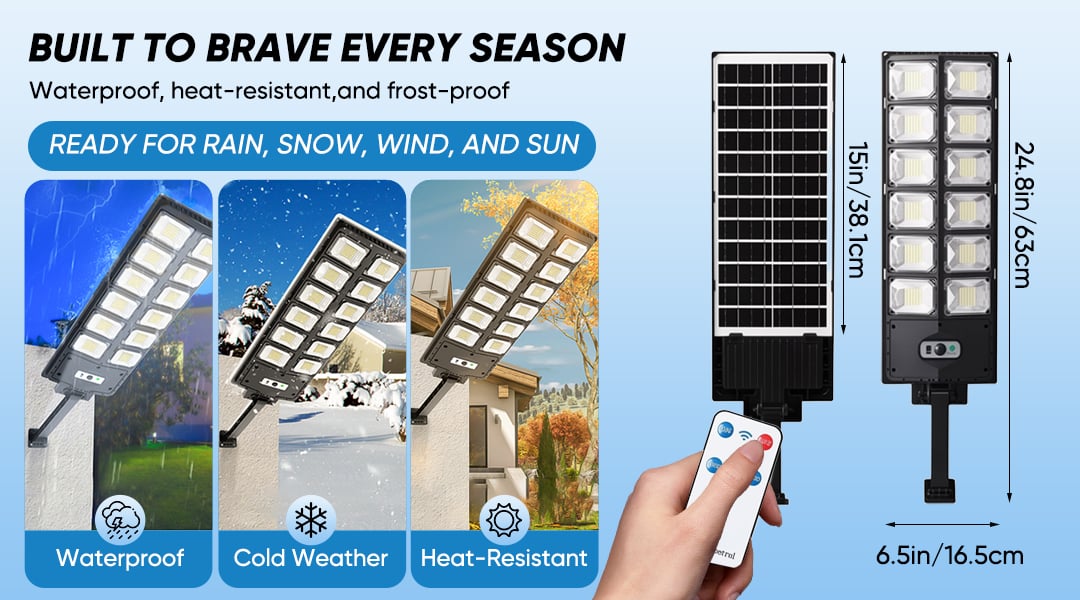 Yes, it's built tough. The light is waterproof, heat-resistant, and cold-resistant, so it works reliably in rain, snow, frost, or even a heatwave. It's designed for year-round outdoor use.