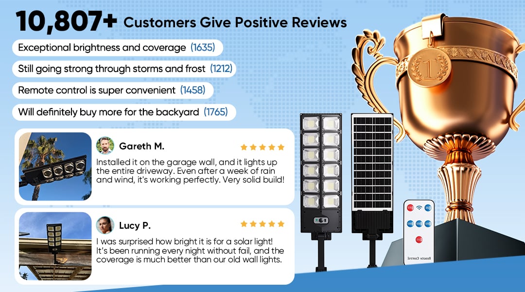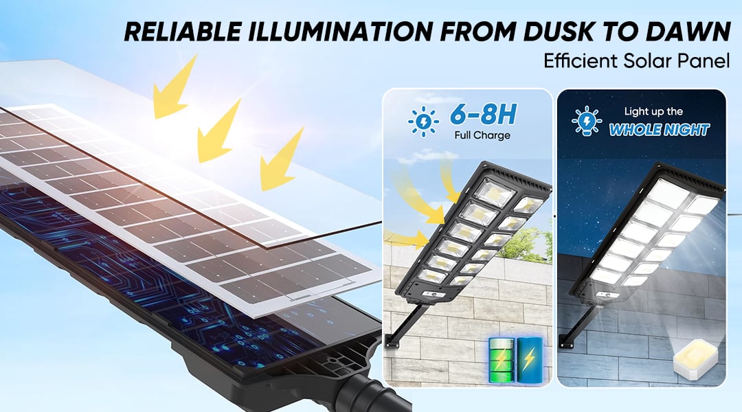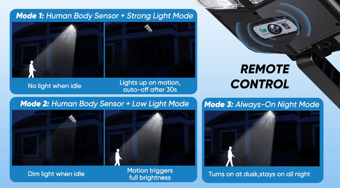 Thanks to its 220° wide-angle design, it can illuminate up to 3,400 sq. ft (396㎡) – perfect for large driveways, gardens, or security areas. It lights up more space than traditional wall lights or spotlights.