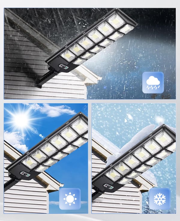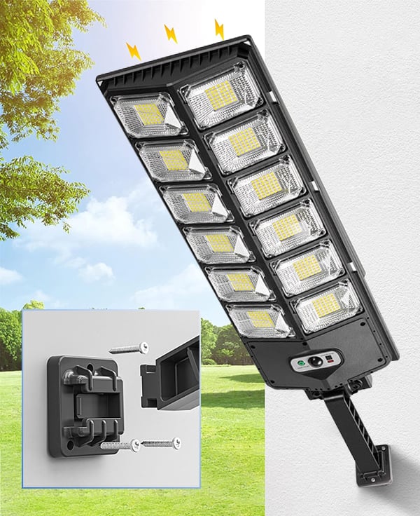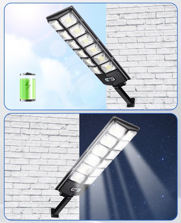 100% on solar power—no wiring, no energy costs. Just set it up and enjoy free, powerful lighting every night.