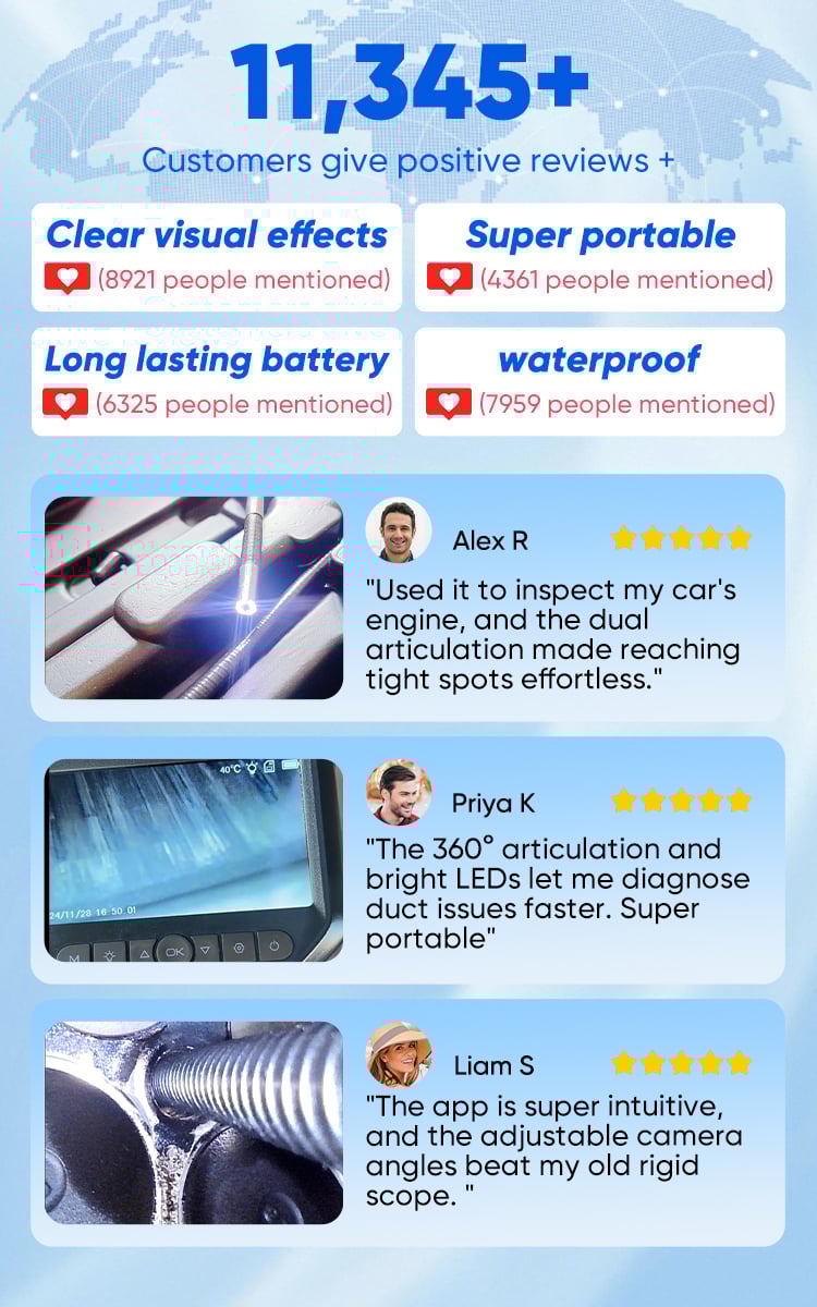 The two-way articulation is a game-changer. I can inspect hard-to-reach areas in my car engine without any hassle.