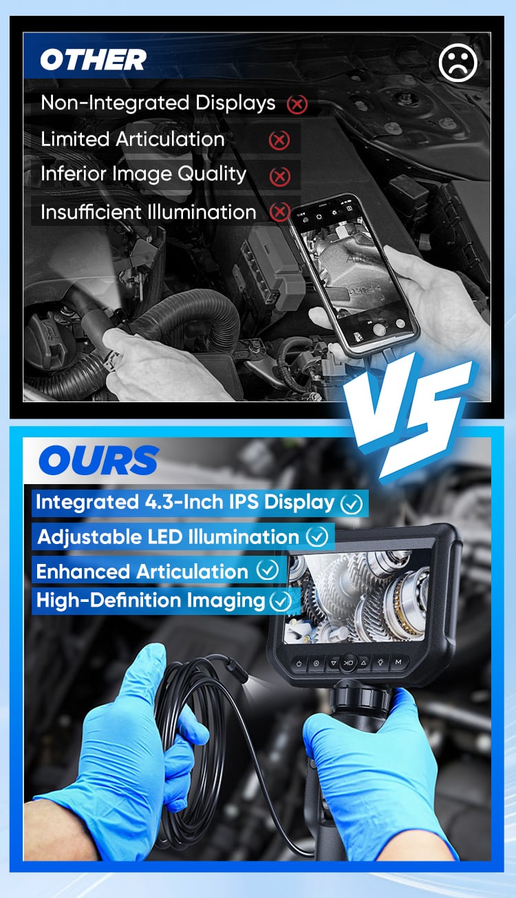 The image quality is outstanding. The 4.3-inch IPS screen provides clear and vibrant visuals, making inspections much easier.