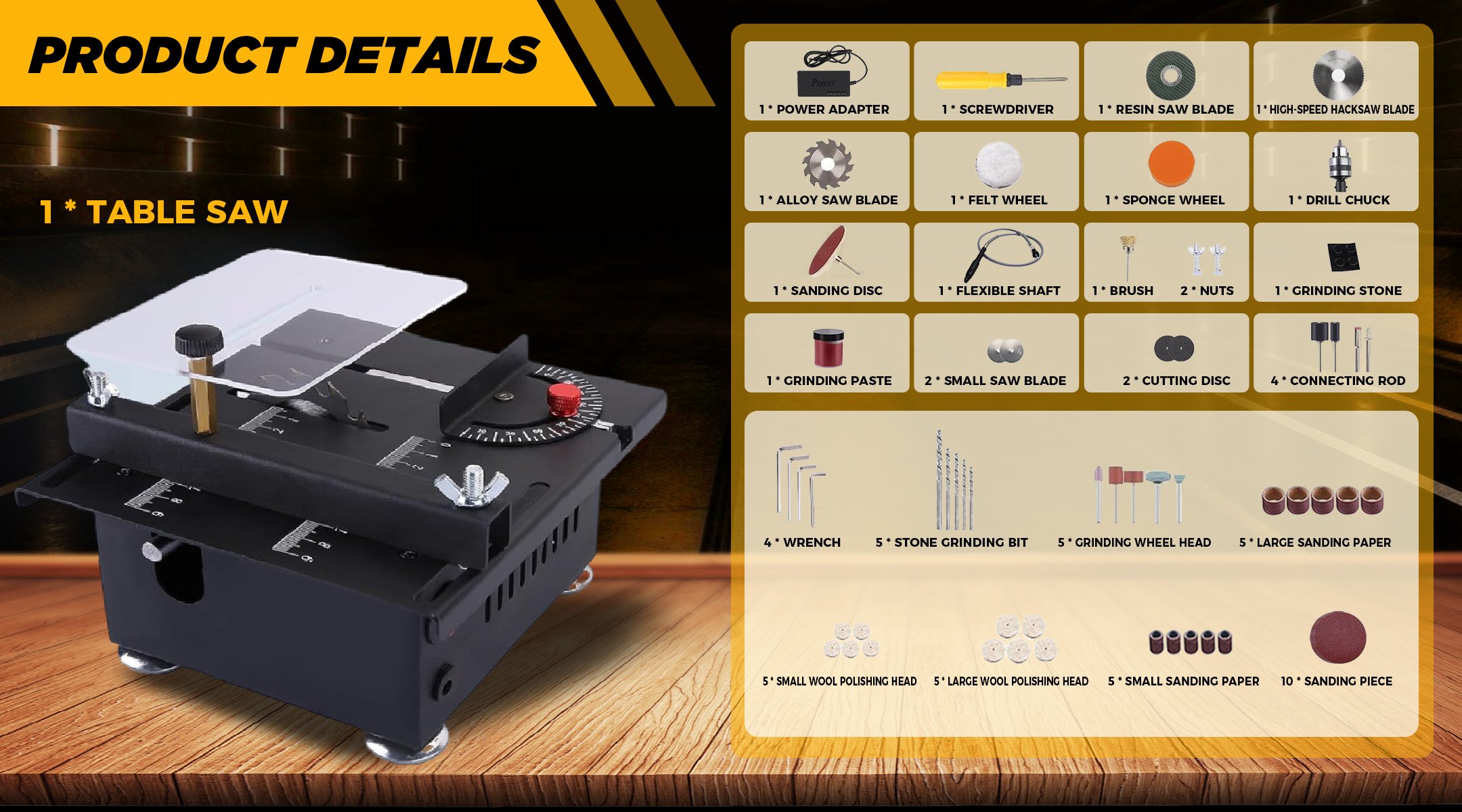 I'm really impressed with this mini table saw. It’s sturdy, easy to use, and perfect for my DIY needs. The anti-slip feet and clear markings are great features. Highly recommend!!!