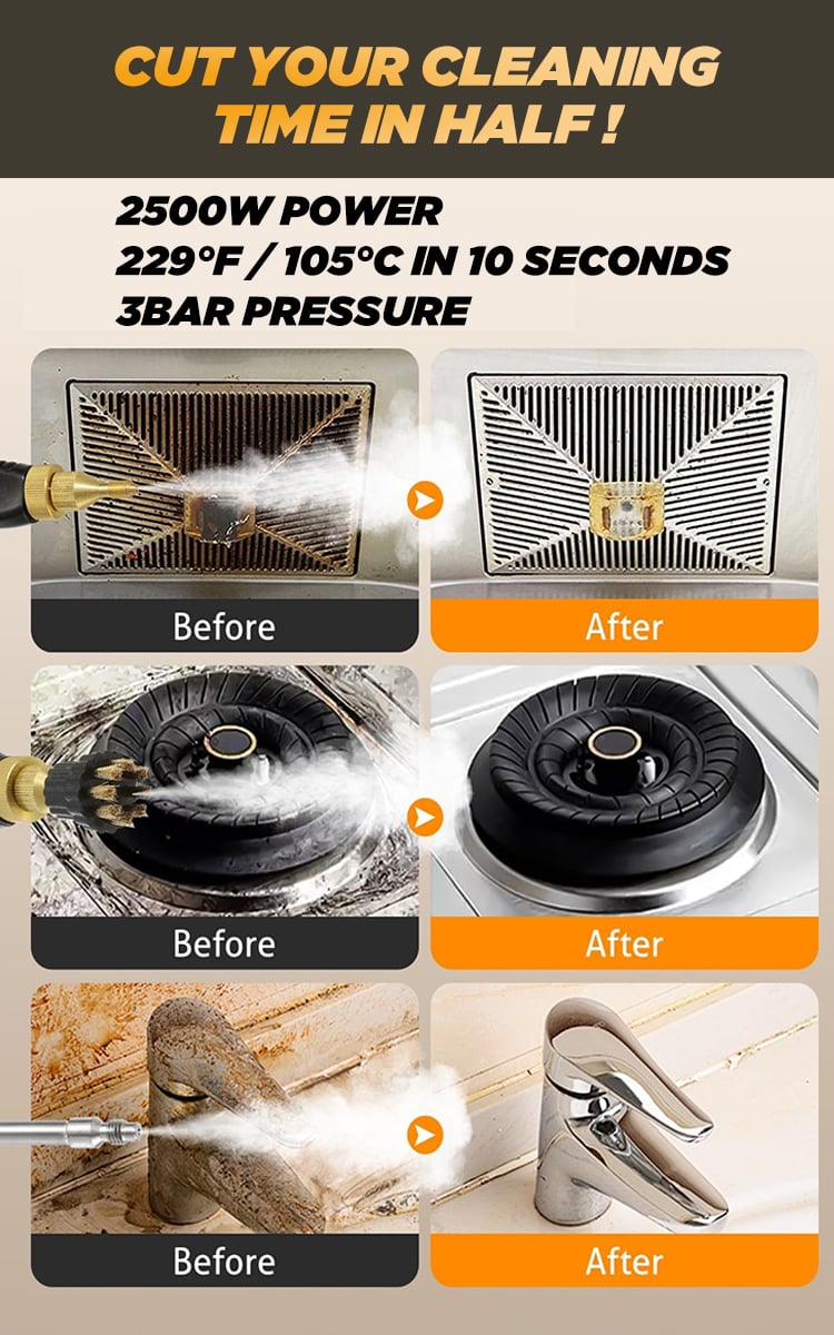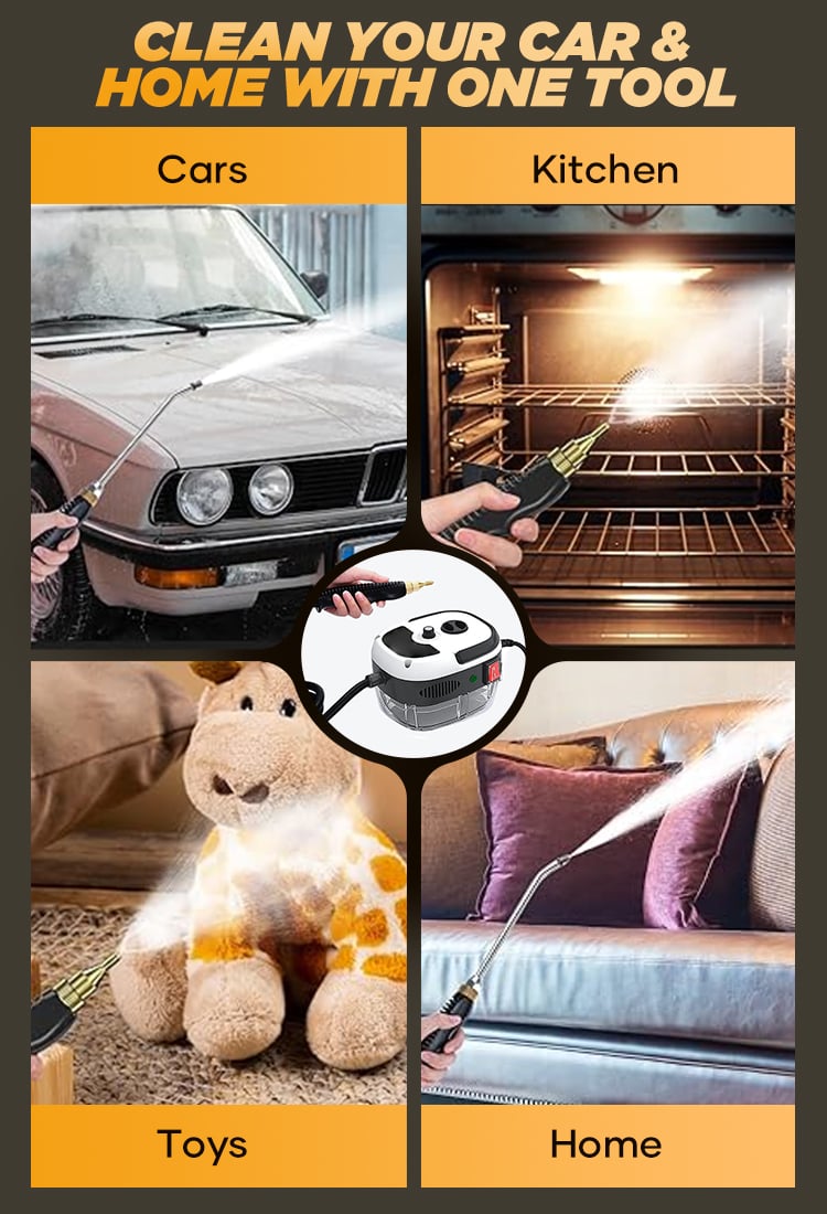 Steam cleaner for EVERYTHING. Comes out strong and cleans all of the dirt and grime. Super compact and really works well, great price point and you can use it inside outside or anywhere. It is so convenient to use in your home and your car and gets all of the grime.