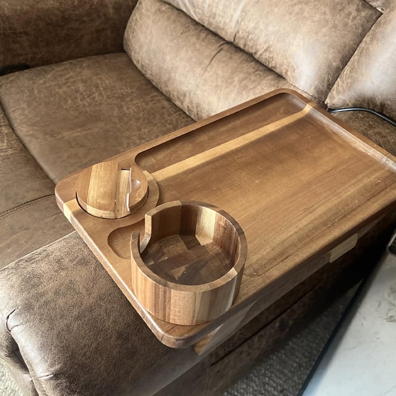 “After my kids stained our brand new sectional with juice, I was desperate for a solution. These arm tables have been lifesavers! The kids still have their drinks and snacks, but now they stay on the wooden surface instead of balanced precariously on the cushions. When spills happen (and they do), they're contained to the table which wipes clean easily. My sofa has remained stain-free since we got these!”