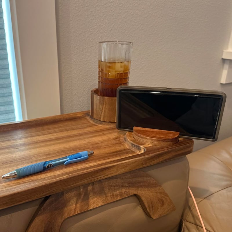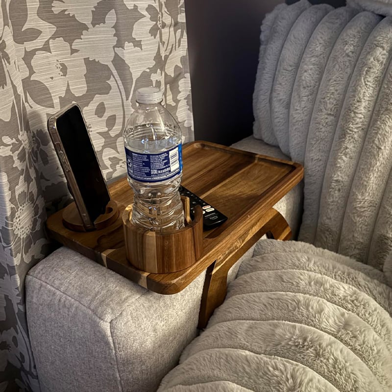 “This thing is genius! I can keep my coffee secure in the holder, my phone visible at the perfect angle, AND have space for snacks. No more getting up every 5 minutes or knocking things over. Best purchase I've made for my living room in years.”