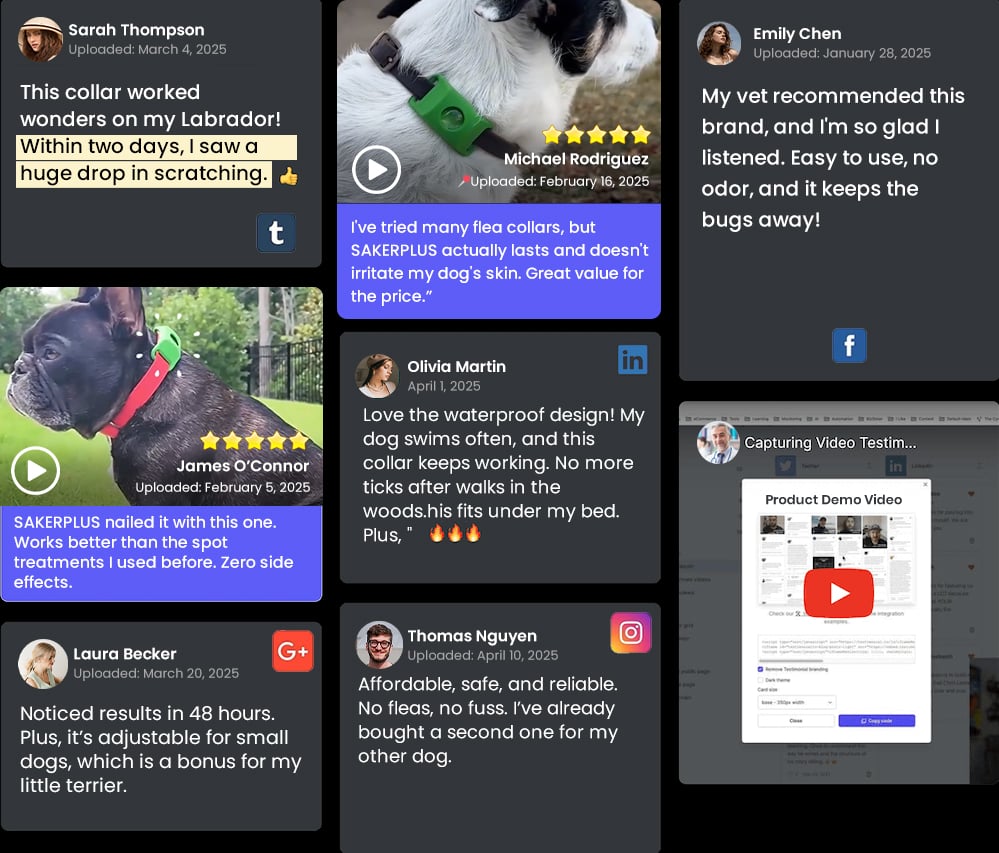 “I have both a 7-pound Yorkie and an 85-pound Labrador. Finding protection that works for both has been impossible until Sakerplus. The pendant stretches to fit both collars perfectly, and both dogs have been flea and tick free for 8 months now!”