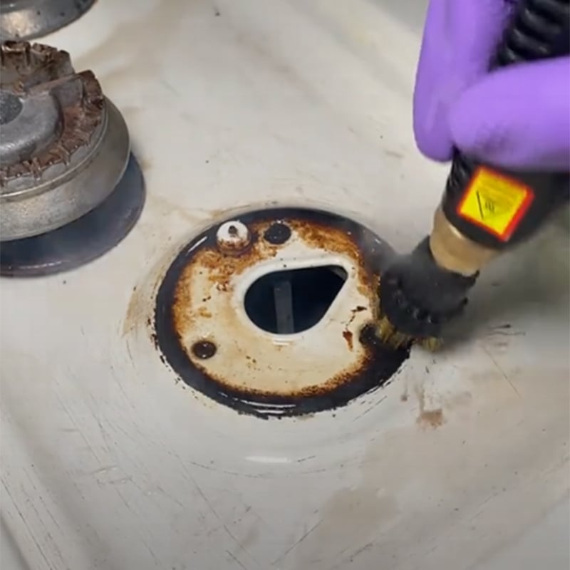 · 229°F/105°C superheated steam that liquefies hardened grease
