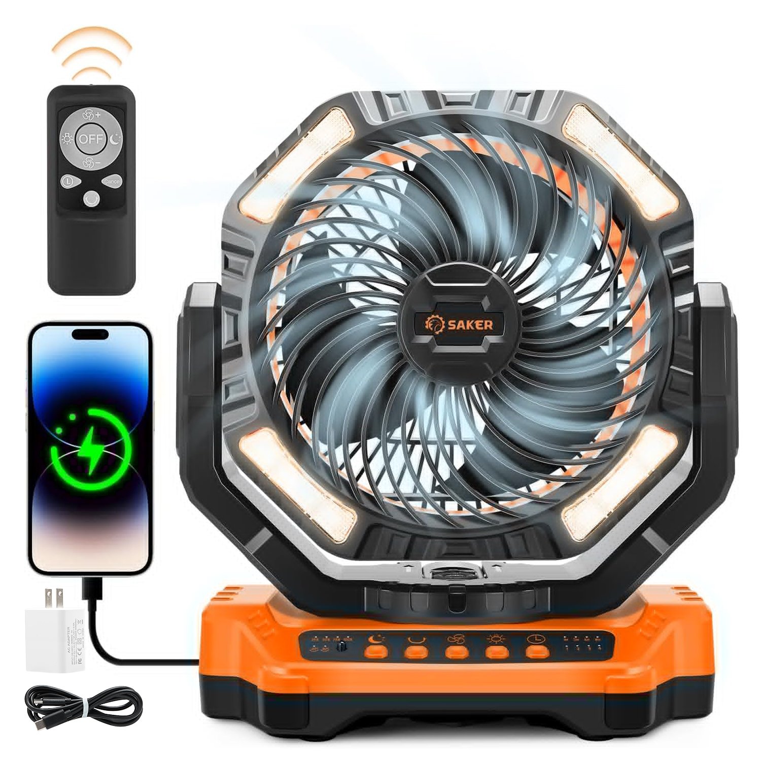 These fans are a lifesaver! 20,000 mAH battery makes these fans run for hours on high. My favorite feature is the 360 plastic hook on the bottom. I am able to suspend these from the roof of a canopy tent and blow them down on us when we work weddings with our photo booth. They are amazing for providing a reprieve from the hot weather. Summer is just around the corner, and with summer storms comes a power outage. Buy it. You won't be disappointed.