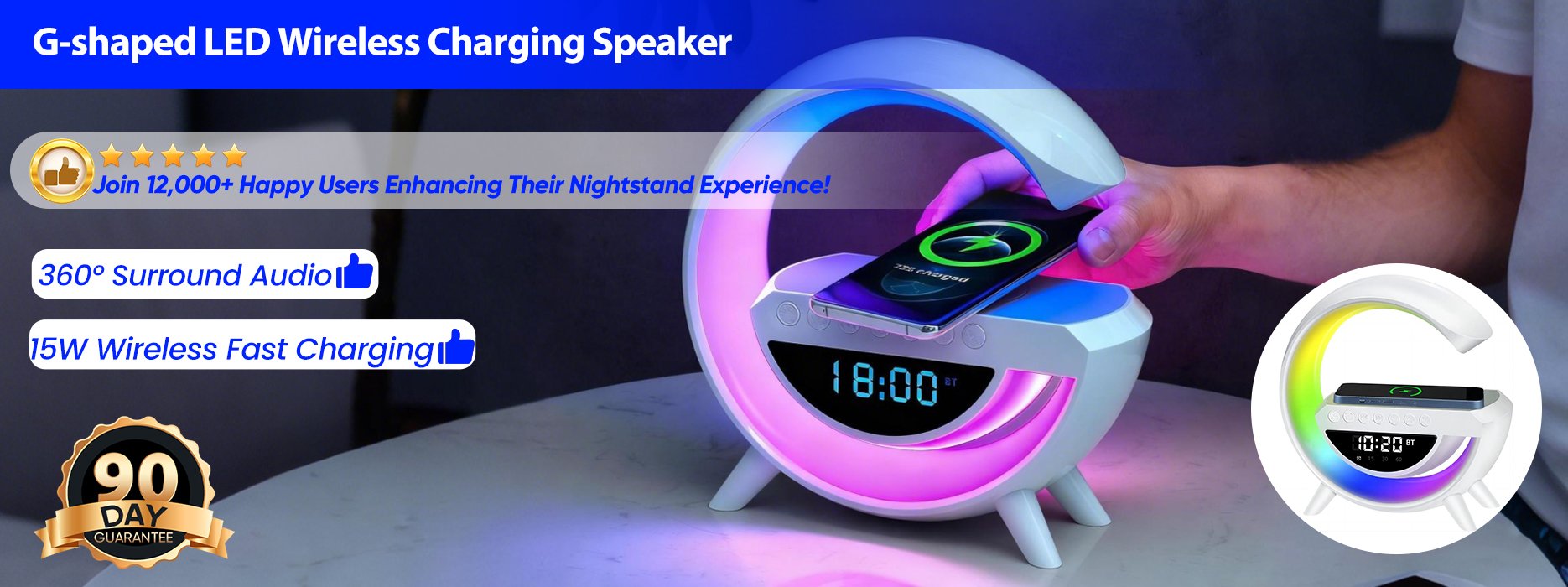Perfect for my gaming setup. It sits next to my monitor, charges my phone, and plays background music. The G-shape looks super clean and modern, and the Bluetooth connection is rock solid.