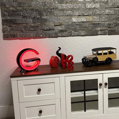 Perfect for my gaming setup. It sits next to my monitor, charges my phone, and plays background music. The G-shape looks super clean and modern, and the Bluetooth connection is rock solid.