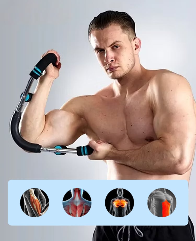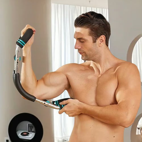 Compact arm trainer lets you build muscle anywhere—no setup needed.